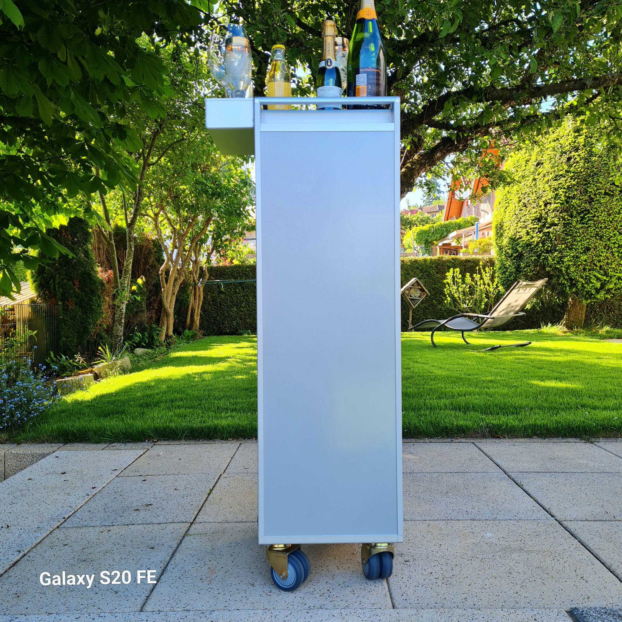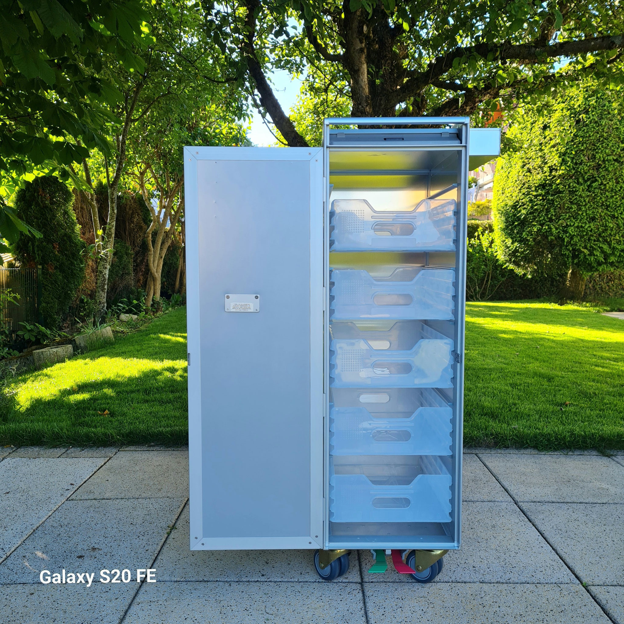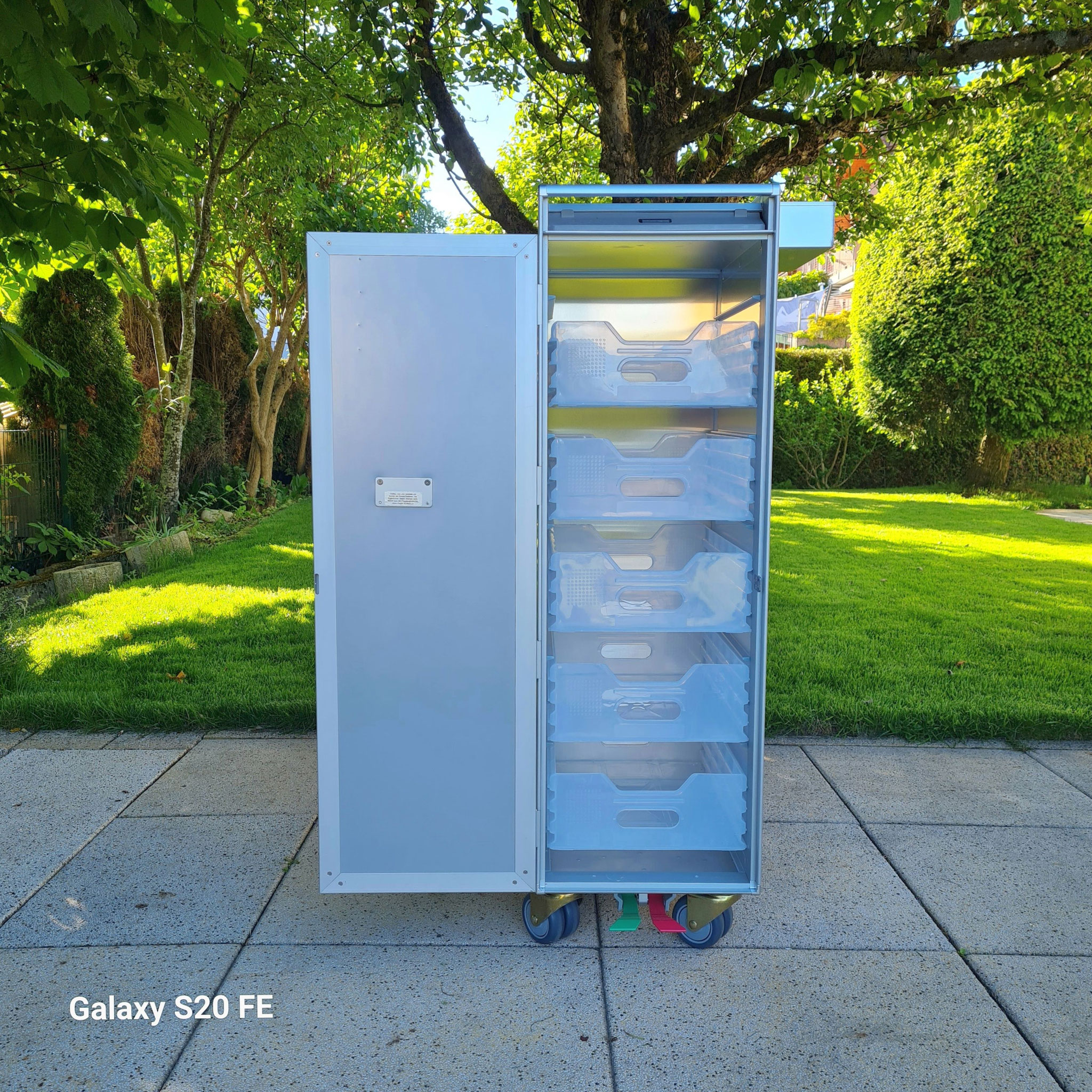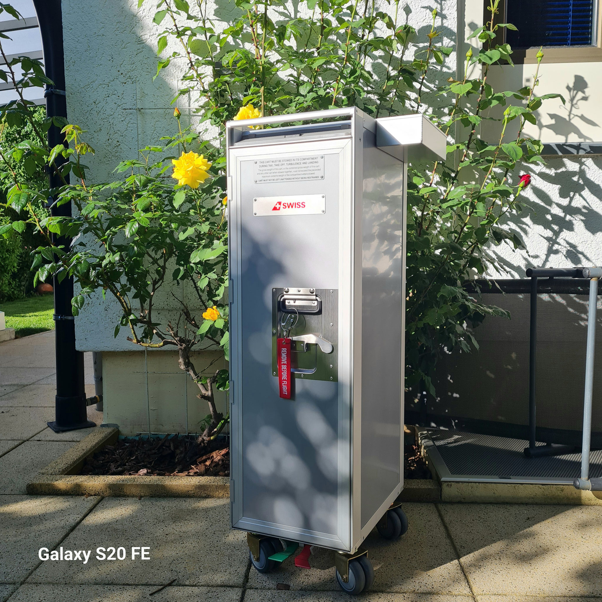 Wir haben diesen neuen Flugzeugtrolley in edlem Silbergrau (RAL 7001) mit Stow- and Secure-Aviatikschild und vielgeflogenem, top erhaltenem Originalschild der Swiss veredelt (Swiss International Air Lines).